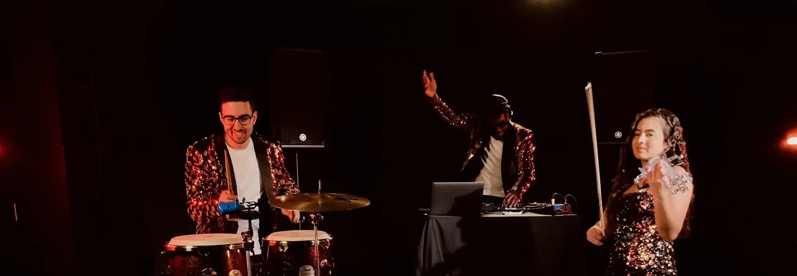 Andy is a highly skilled percussionist who has collaborated with DJs, bands, and various artists. He brings a wow factor to any event with his exceptional performance and eye-catching silver sparkle congas.